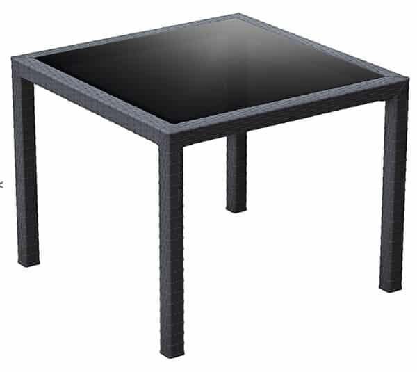 The Bali Table is an injection moulded resin table the non-metallic frame will never unravel rust or decay. Reinforced with glass fibre to strengthen the legs and boost the weight capacity. The Bali Table is designed for shaded outdoor use with toughened glass it is stylish and safe semi UV stable and weather proof. Strong yet lightweight. This table will add class to your venue. It’s sleek profile is pleasant to the eye so this table is as charming as it is functional. Very easy to clean just hose it down.