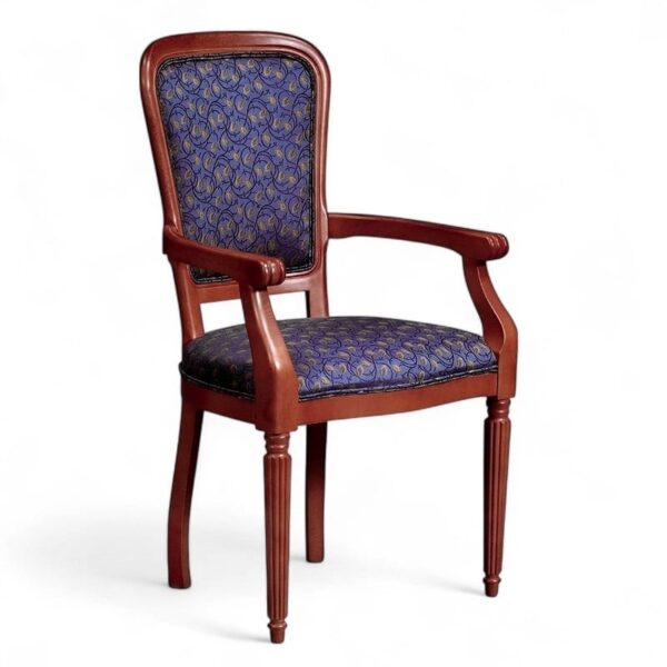 Traditional style carver dining chair 1000mm H, 570mm W, 460mm D, 670mm Arm Height Available in your choice of upholstery and a range of stained finishes 0.75m fabric