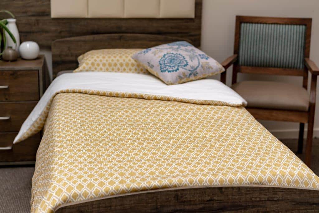 Our Harlequin Doona Covers are custom made to order, giving you the flexibility to choose from the wide range of Materialised Print Collection fabrics. This allows you to create a look that perfectly complements your interiors while maintaining the durability and practicality needed in aged care environments.