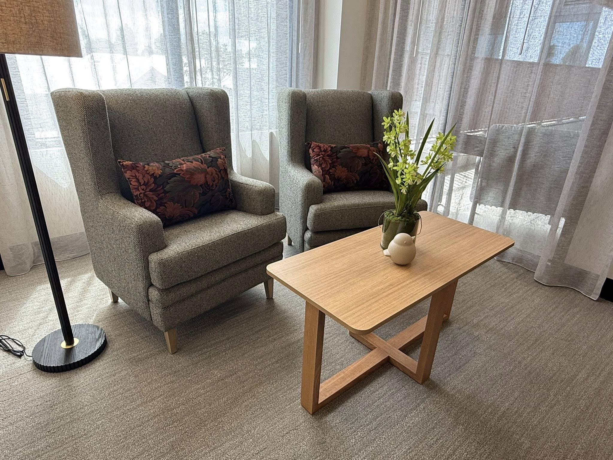 The Drews Wing Chair brings a touch of sophistication to any lounge, waiting area, or private room. With its high back, plush cushioning and graceful winged silhouette, it offers exceptional support and visual appeal while maintaining enduring structural strength.