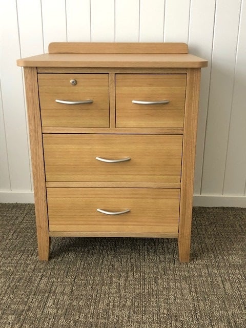 The Elaine range combines the natural beauty of solid timber with hand-laid veneers, finished in a fresh, contemporary style. Available in multiple drawer configurations and stained finishes, these bedside tables feature a raised base for easy cleaning without the need to move the unit. This unit features 2 small drawers and 2 standard drawers.