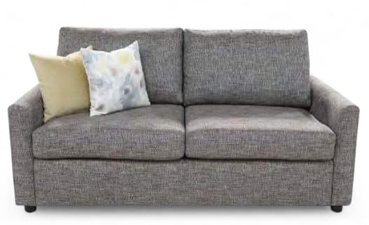 Australian Made sofa bed featuring premium foam cushions, fibre filled back cushions and a Linkrest bi-fold deluxe bed mechanism with inner spring mattress.