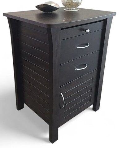 The Linear range combines the natural beauty of solid timber with hand-laid veneers, finished in a fresh, contemporary style. Available in multiple drawer configurations and stained finishes, these bedside tables feature a raised base for easy cleaning without the need to move the unit. This unit features 2 Drawers, 1 Door with a pull out breakfast tray,
