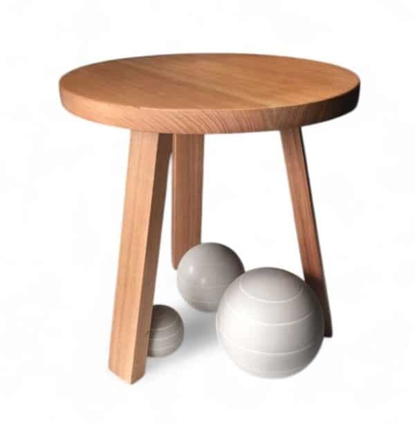 Round coffee table 500mm D x 600mm H, with 3 splayed legs, solid Victorian Ash Available in a range of stained finishes