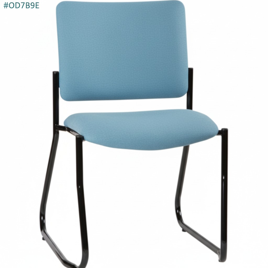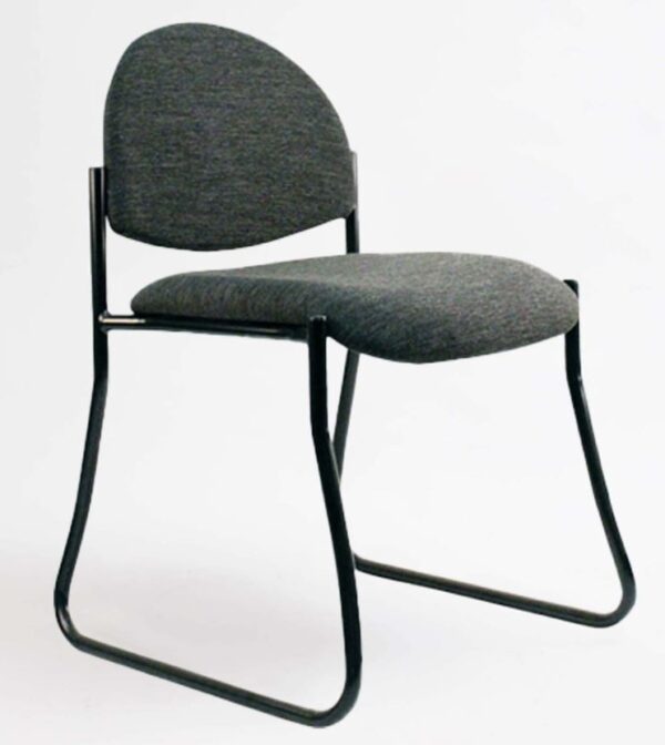 Australian Made Stackable Meteor Chair with round back and sled base. 22mm tube frame, black powder coated legs and antimicrobial foam.