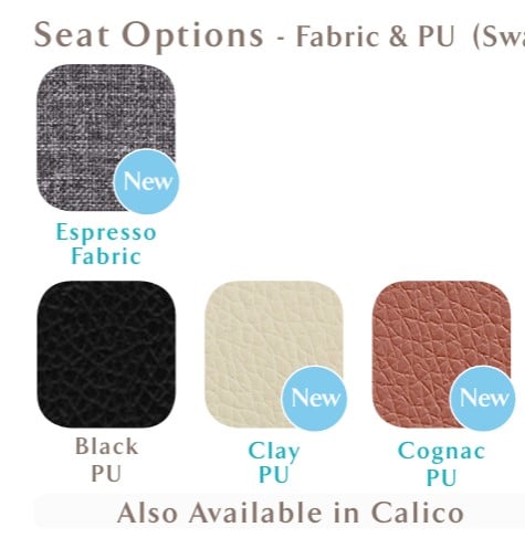 Fabric Options: Espresso Fabric, Black PU, Clay PU, Cognac PU
