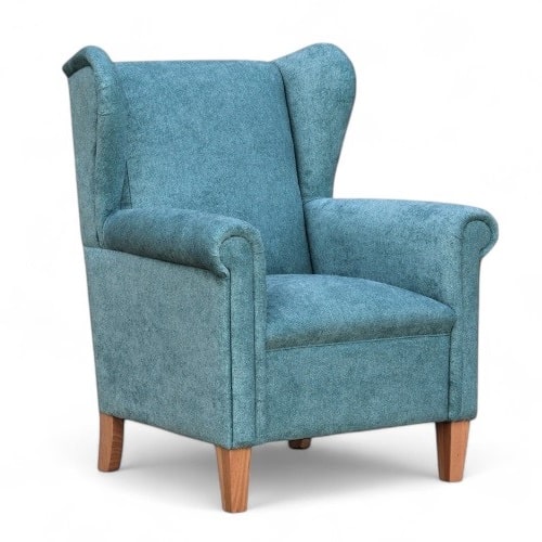 Timeless classic wingback armchair with attached seat (not loose cushion).