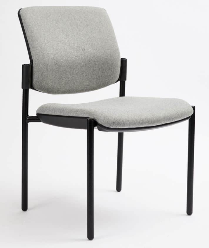 Australian Made StackableChair with square back, arms and 4 legs. 22mm tube frame, black powder coated legs and antimicrobial foam.