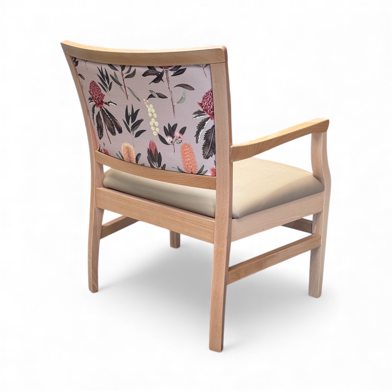 Crafted with a solid European Beech frame and designed for residents who need a larger chair with extra strength and stability. Featuring additional stretcher rails under the sear, thicker rails and 18mm plywood seat the Stephanie Bariatric provides both comfort and support.
