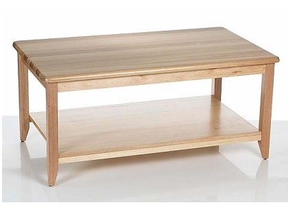 Tasmanian Oak veneer coffee table, tapered legs.  Available in a range of stains.