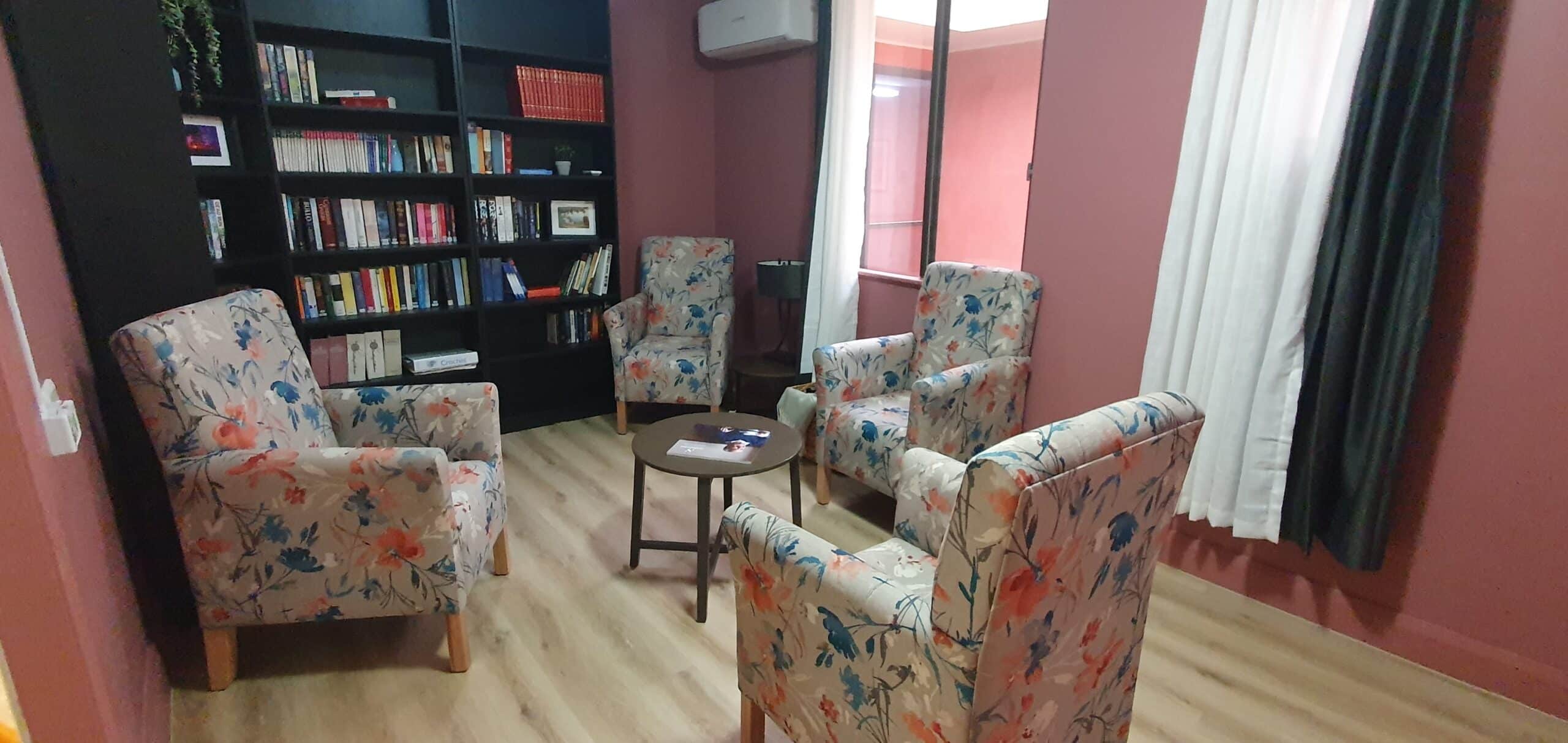 After trialling both the standard Sparrow chair and the Sparrow High Back, this client chose to proceed with the Sparrow High Back. Pictured here in Materialised Bouquet Taupe printed on the lovely and soft Aria Snow.