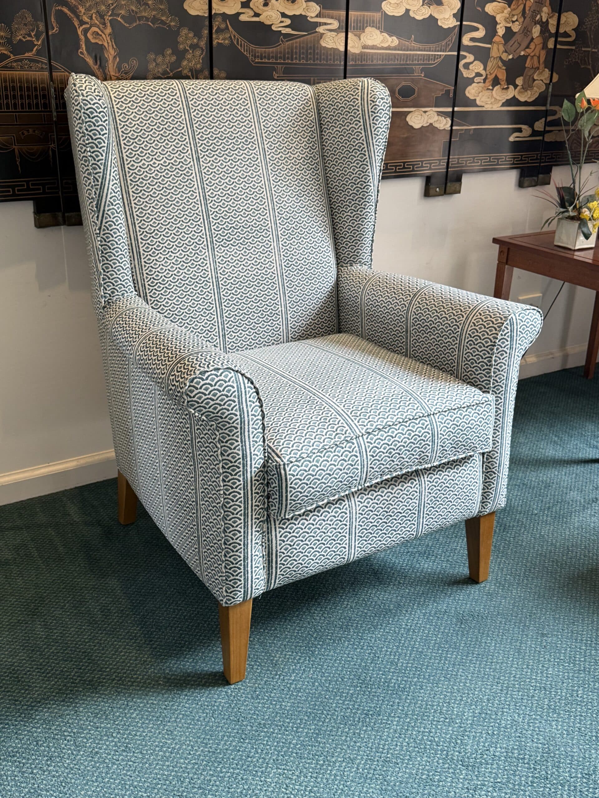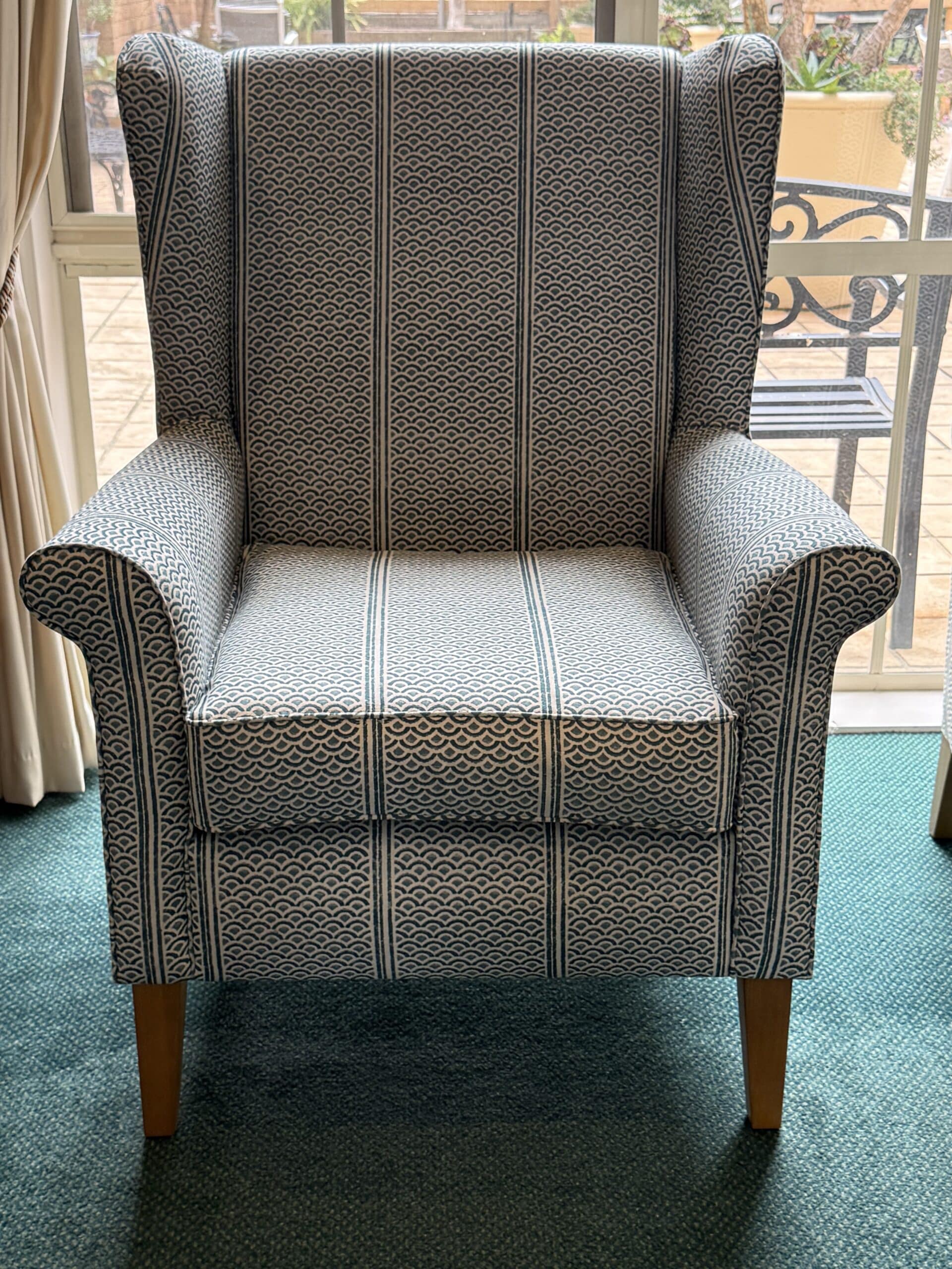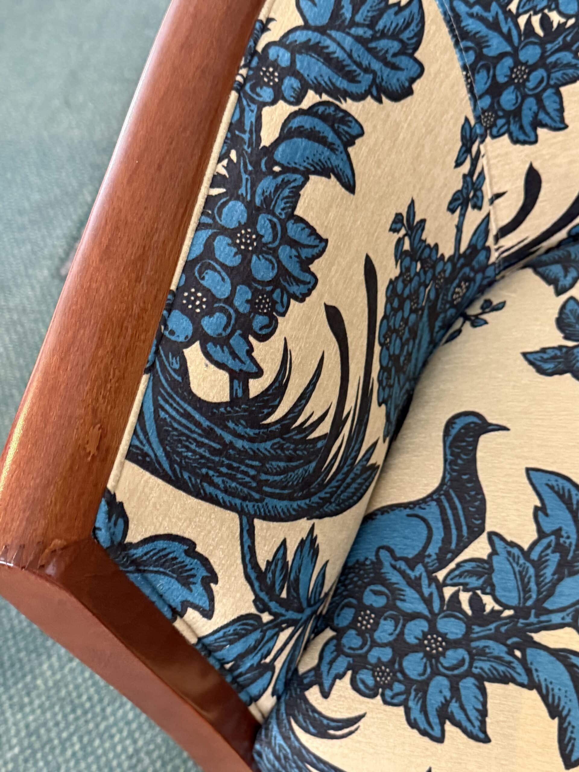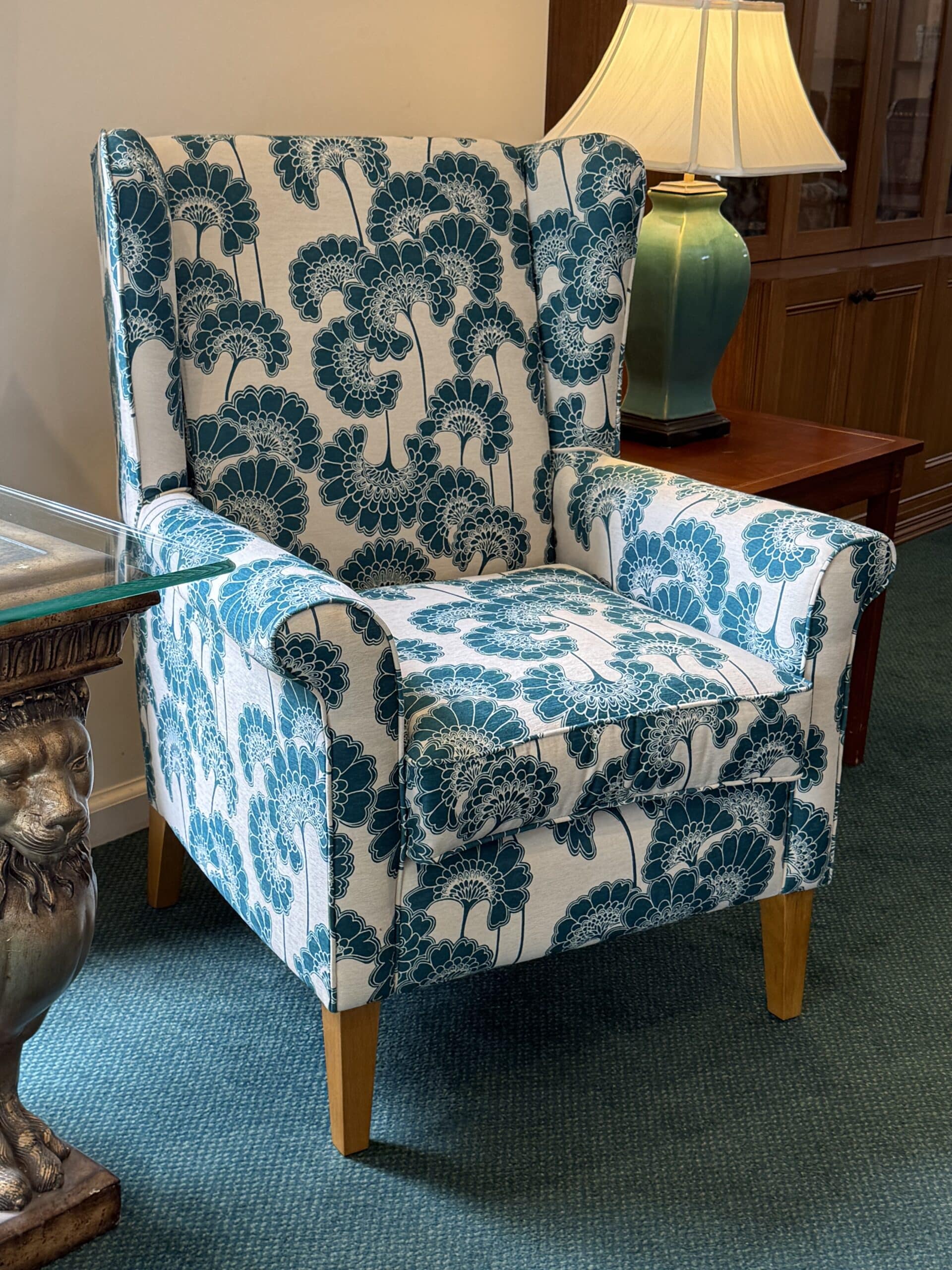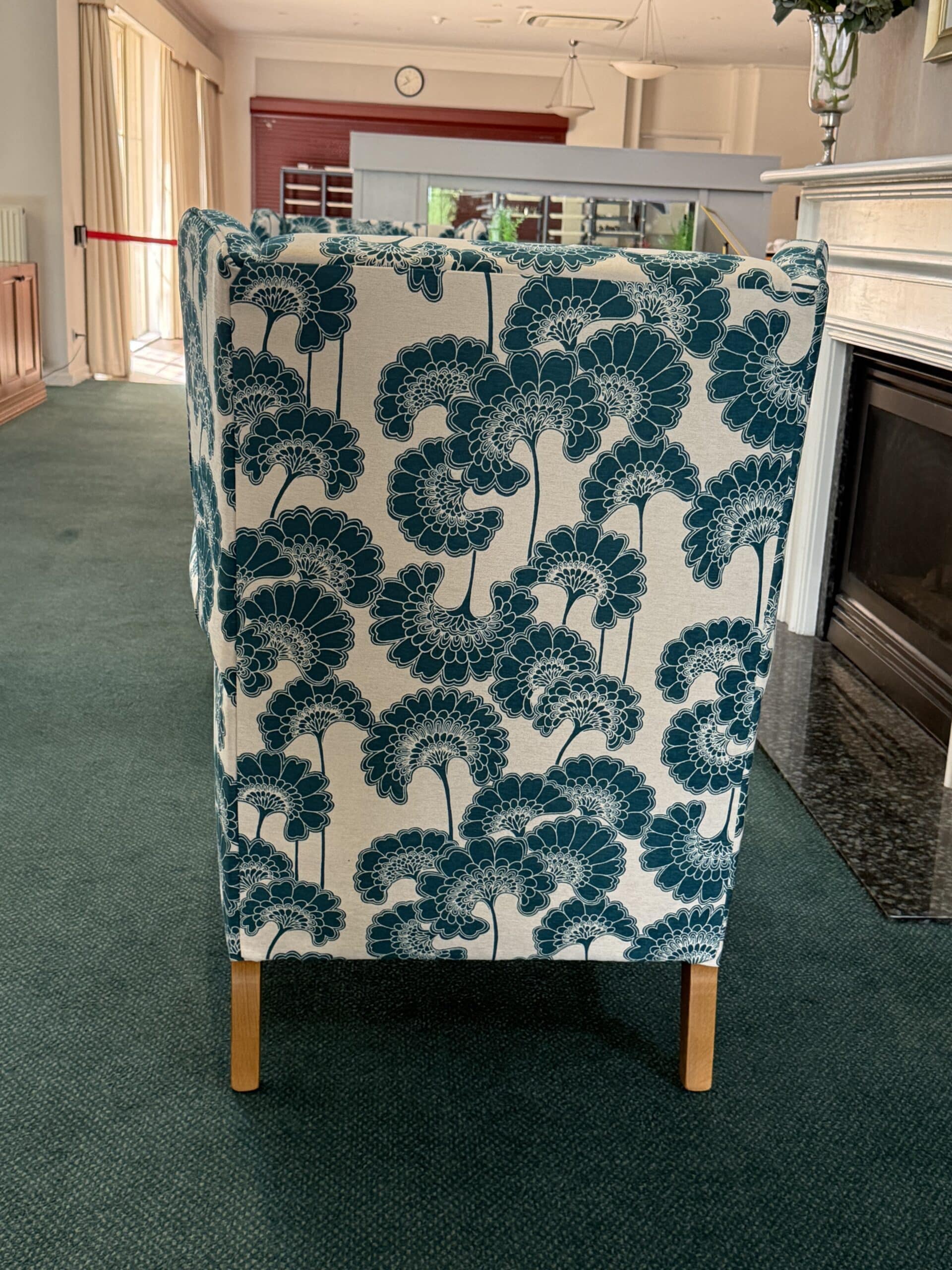 In keeping with the traditional style of this beautiful building, the client engaged an Interior Designer who chose bold and classic Materialised prints to create a statement style, combining comfort for the residents. The Malik was upholstered in the always stunning Birds of Paradise print, while the Hannah chairs featured Japanese Panels Forest and Batu Teal.